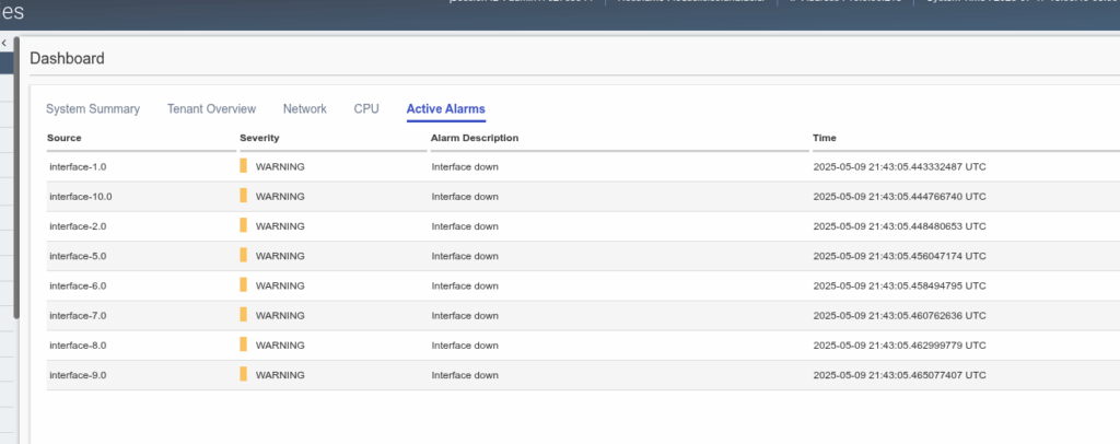 - Esta alarma indica que las interfaces no están conectadas o están abajo