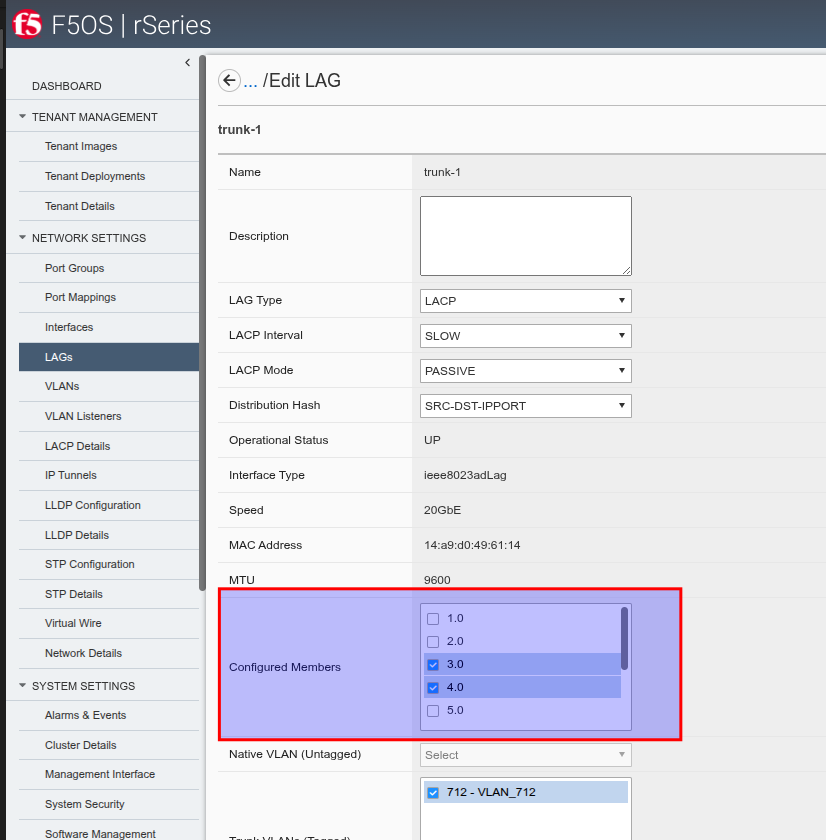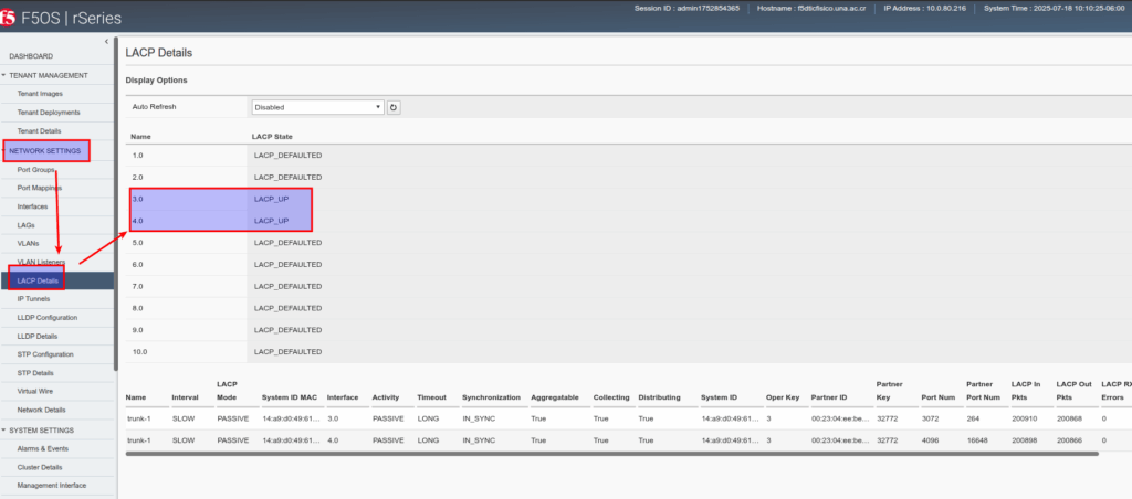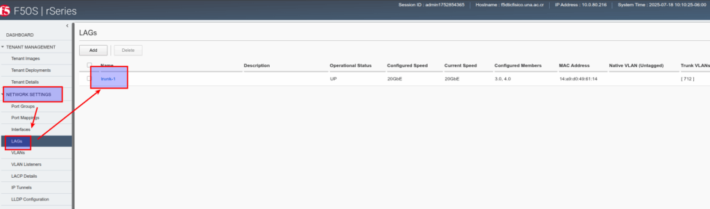 - menú -> NETWORK SETTING -> LAGs Details