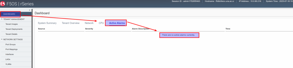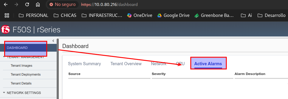 - Para verlas ingresamos a Dashboard-> Active Alarms