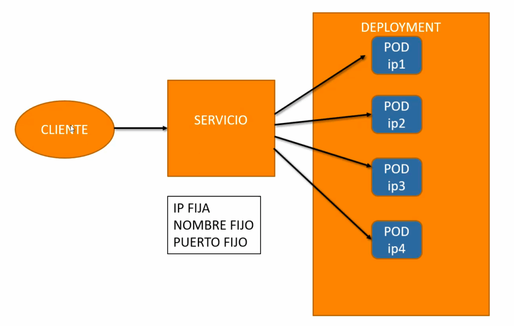 - Un servicio es quien permite a un deployment ser accedido de diferentes formas