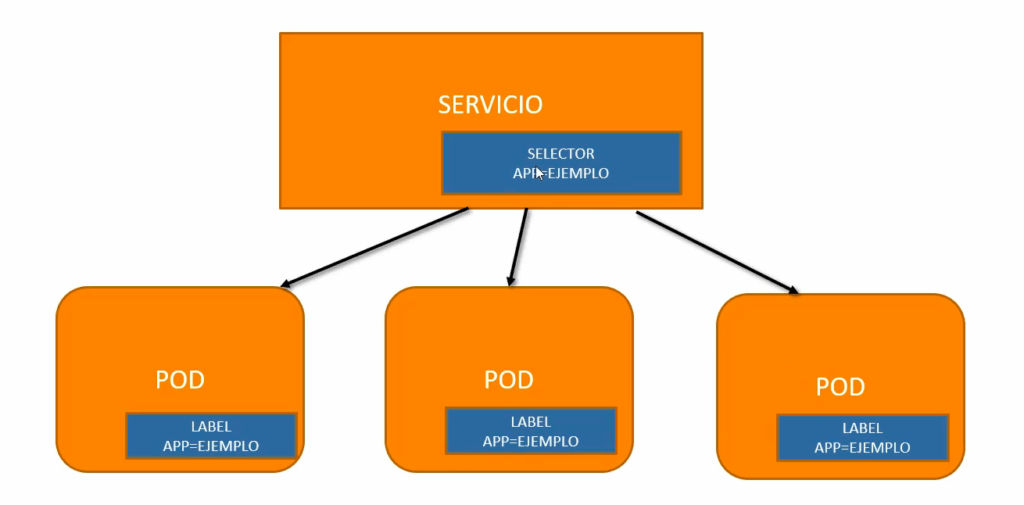 - Entonces el servicio apunta a los pod’s através de un SELECTOR ( es decir una etiqueta)