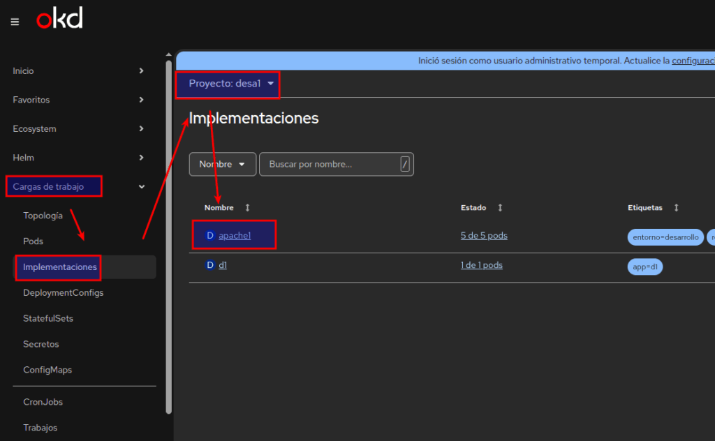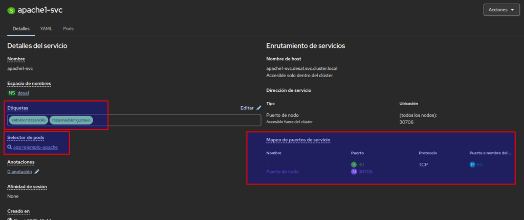 - Aquí podemos notar que ha heredado las etiquetas del deploy