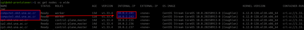 export KUBECONFIG=/home/cgi/okd-install/auth/kubeconfig