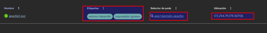 - Y que en el SELECTOR ha establecido que va a trabajar con los pods que tengan la etiqueta app=ejemplo-apache