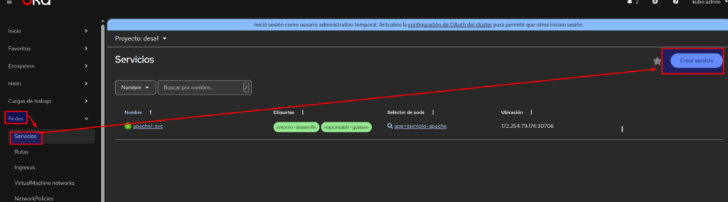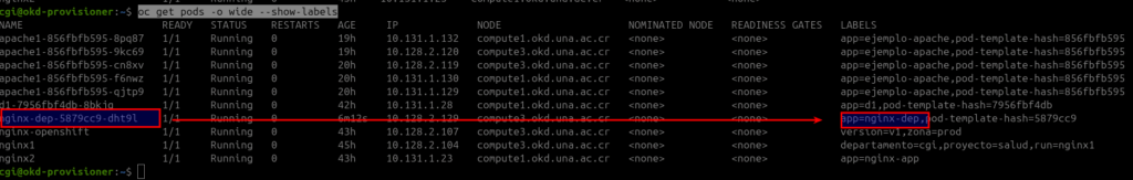 - Por tanto necesitamos saber las etiquetas que tienen los pods del deploy