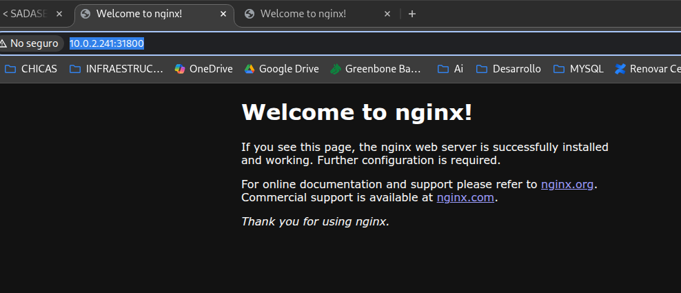 - Por tanto ahora podriamos abrir el navegador con las ip’s de los nodos y el número de puerto del servicio