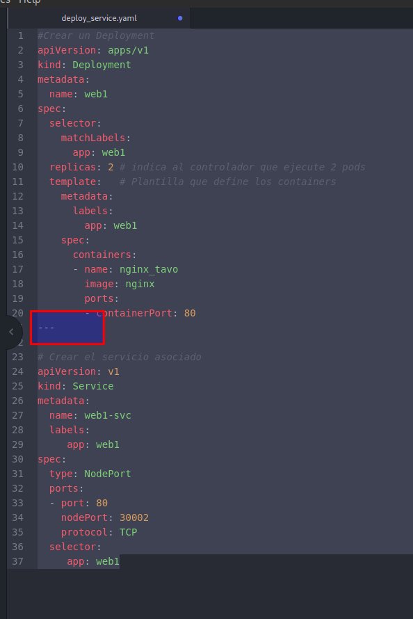 - Ahora hay que recordar que el servicio necesita encontrar los pods por un SELECTOR