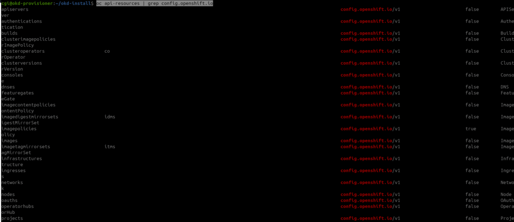 oc api-resources | grep config.openshift.io