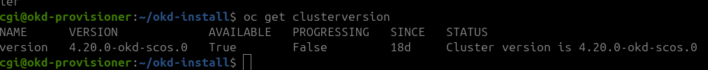 oc get clusterversion