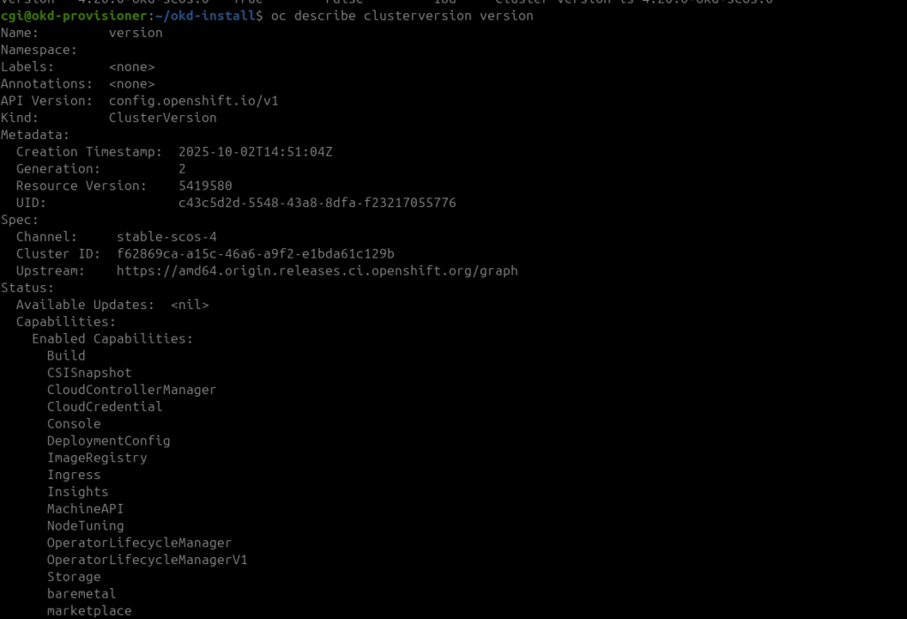 oc describe clusterversion version