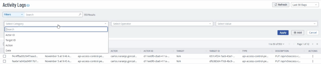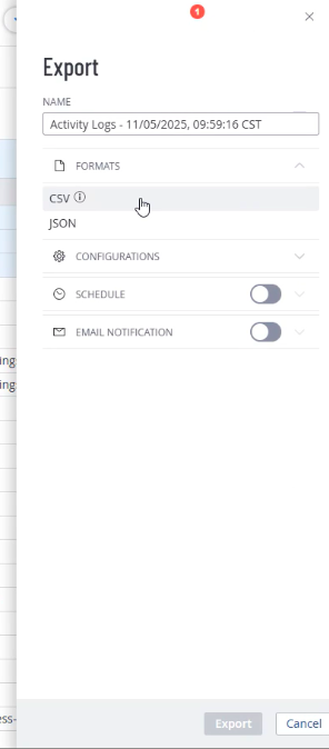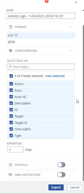 - Activity logs