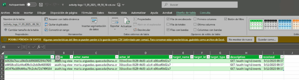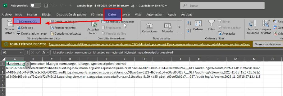 - Lo convierte en excel o CVS