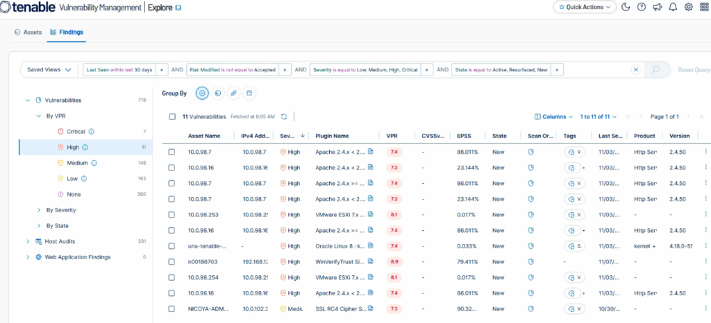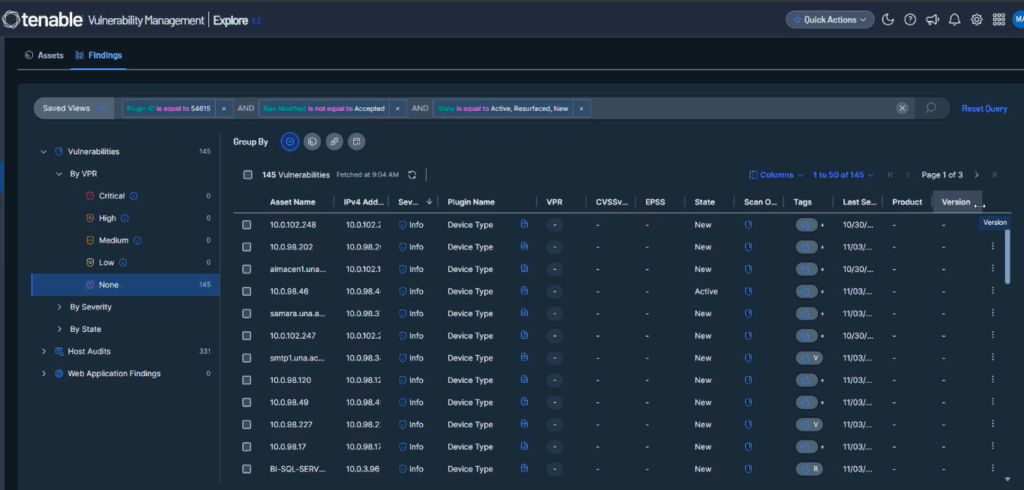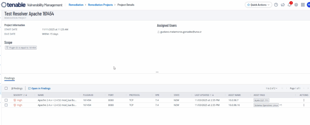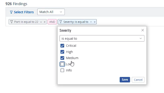 - Si tocamos algo el nos lleva a los findings pero ya con un filtro aplicado