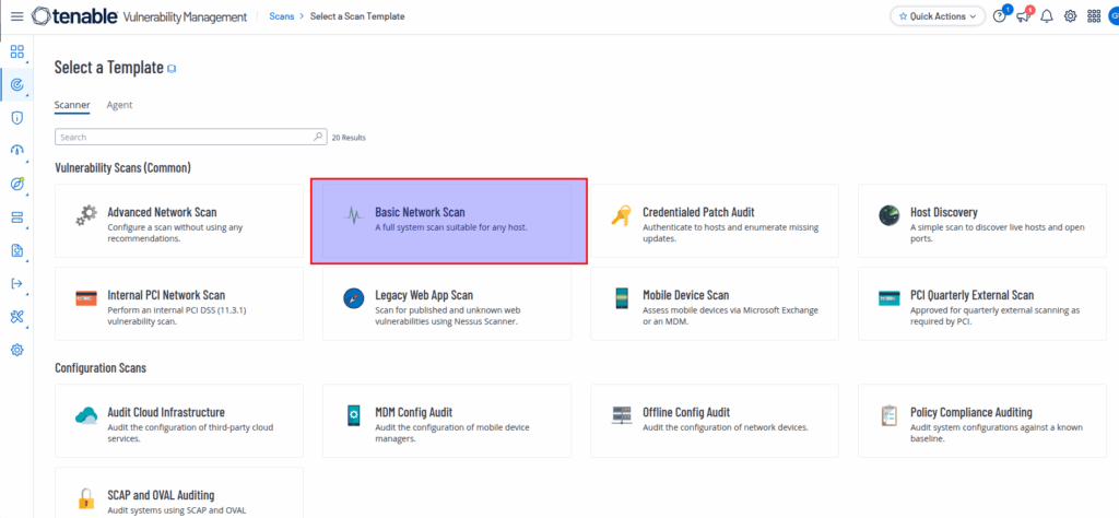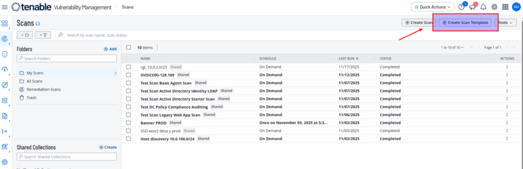 - Ingresamos a Scans -> Vulnerability Management Scans