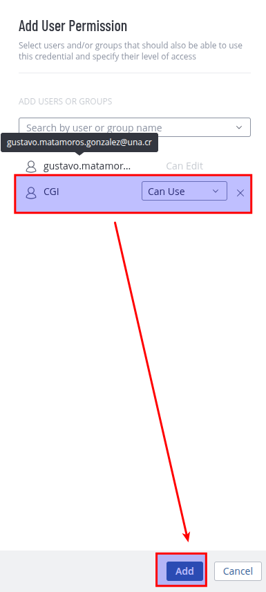 - Descripción: Credencial para usuario CGI para servidores con escalado sudo