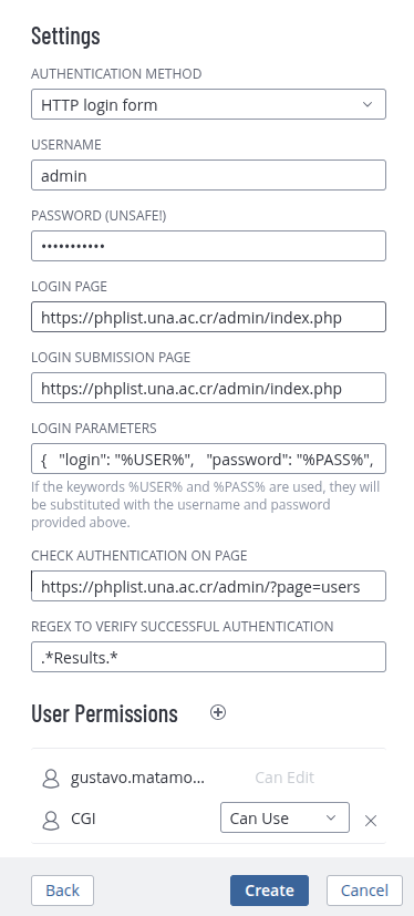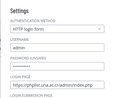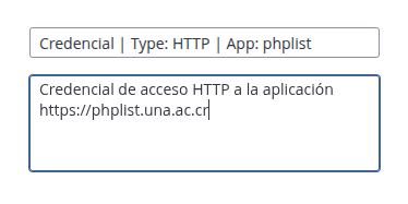 Description: Credencial de acceso HTTP a la aplicación https://phplist.una.ac.cr