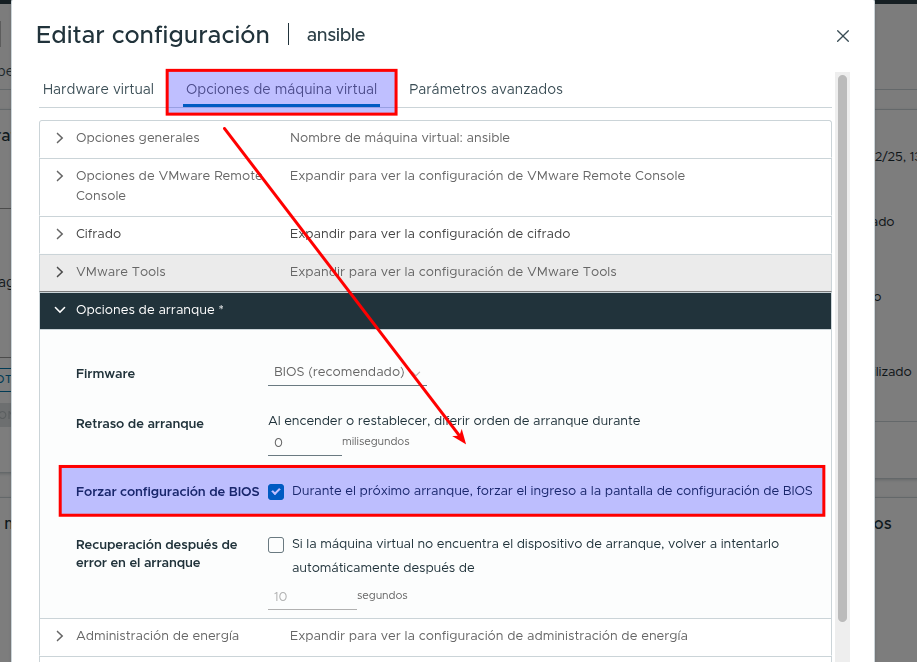 - Y le indicamos que arranque del cd
