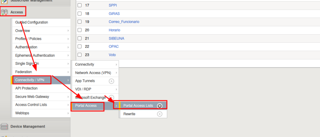 - Seleccionamos el Portal Access