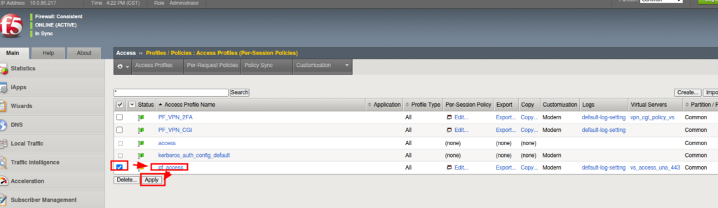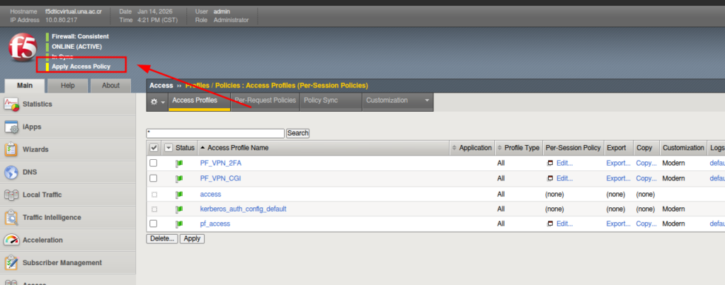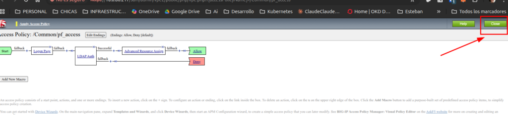 - El f5 nos muestra Apply Access Policy le damos clic