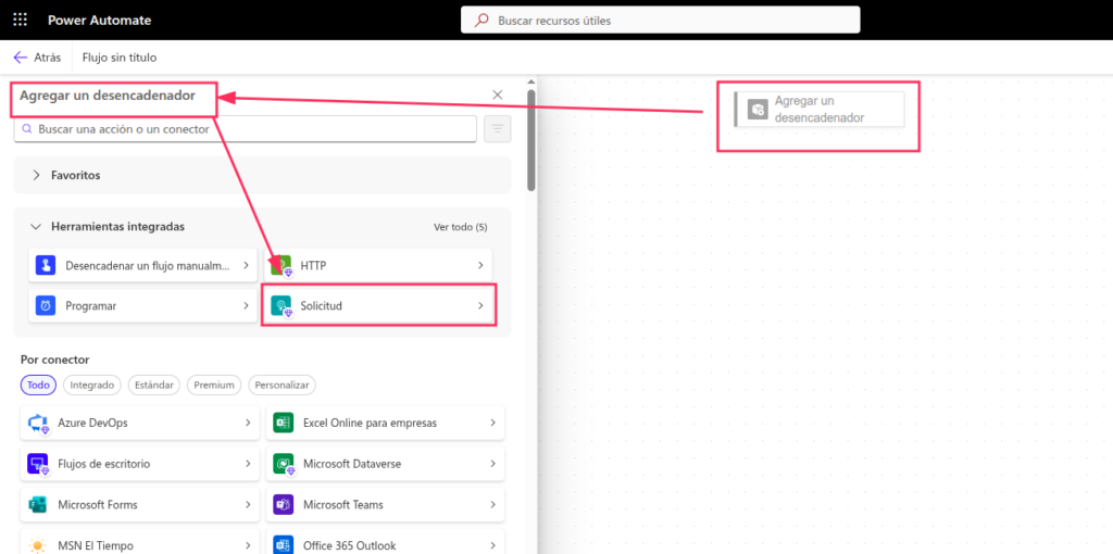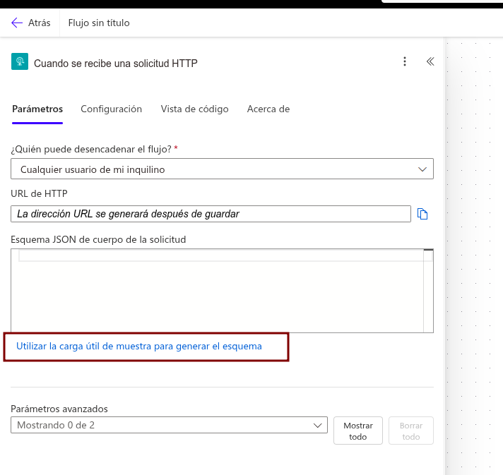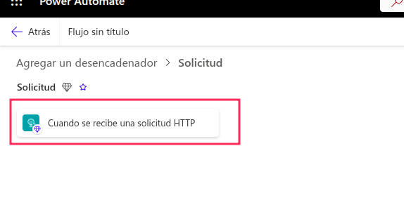 Desencadenador:Cuando se recibe una solicitud HTTP
