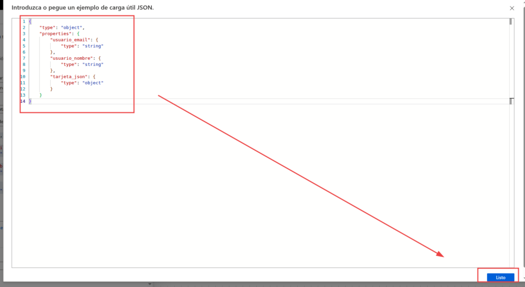 - Nos abre una ventana donde ponemos un ejemplo de los datos esperados