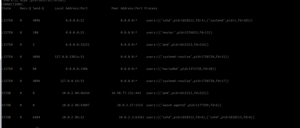 echo "USERS:" && who && echo "PORTS:" && ss -tulnp && echo "CONNECTIONS:" && ss -antp | head