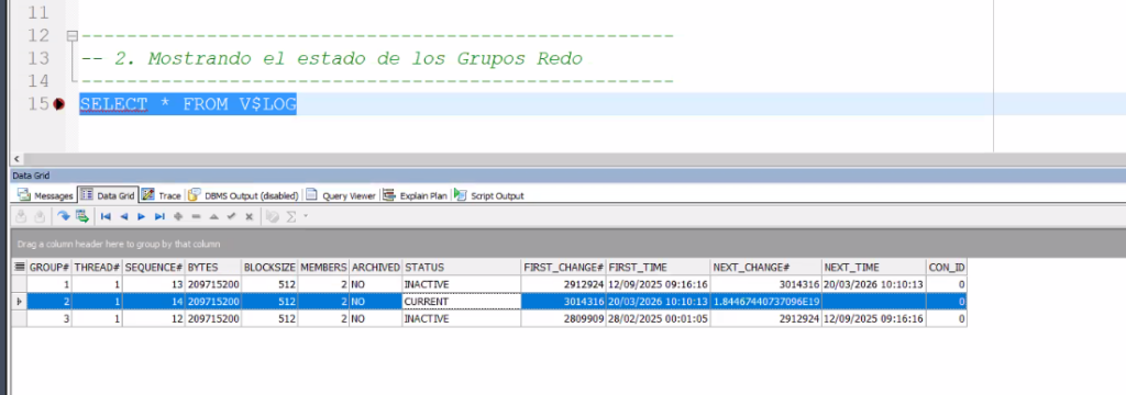 -- 2. Mostrando el estado de los Grupos Redo
