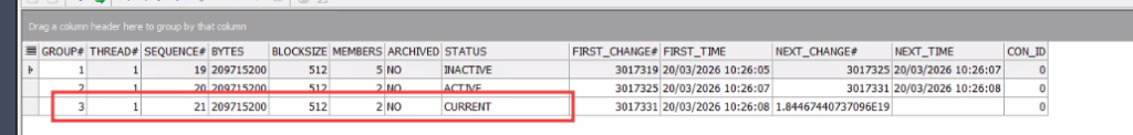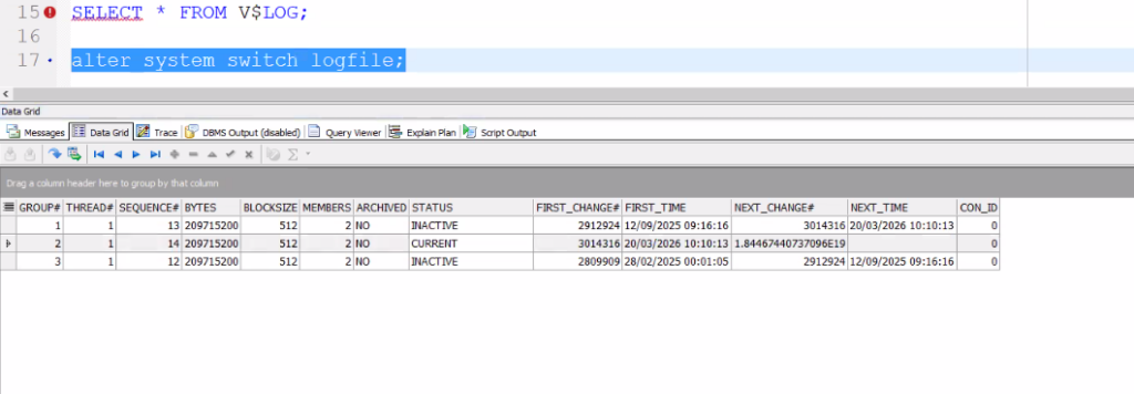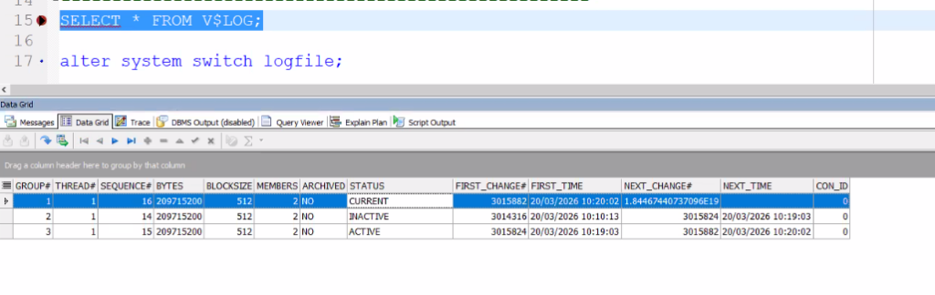 SELECT * FROM V$LOG