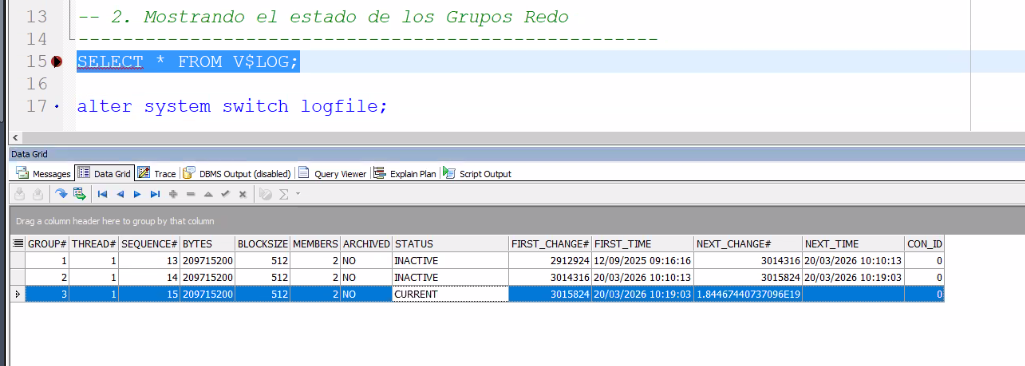 - Redo log graba en el primer grupo y luego pasa al siguiente