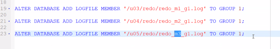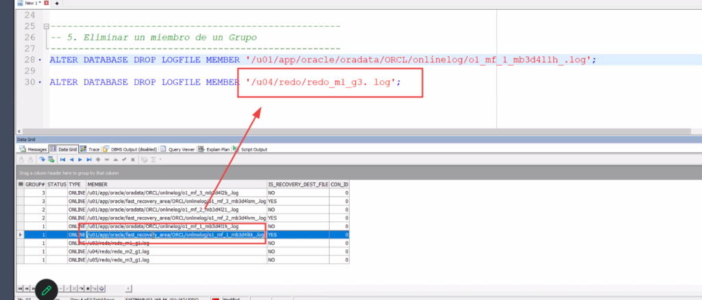 ALTER DATABASE DROP LOGFILE MEMBER '/u04/redo/redo_m1_g3. log';
