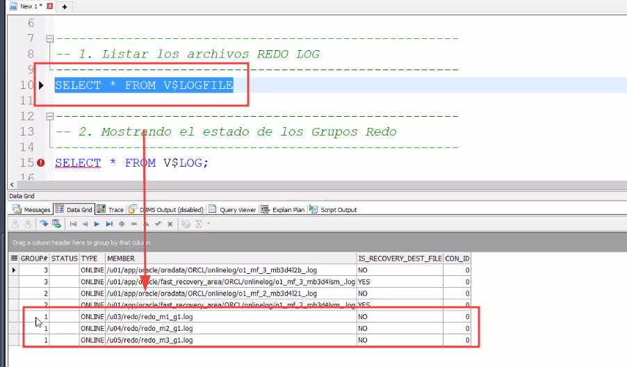 -- 1. Listar los archivos REDO LOG