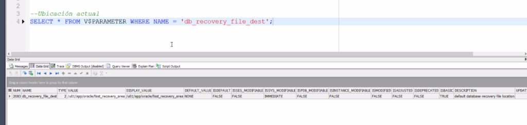 SELECT VALUE FROM V$PARAMETER WHERE NAME = 'db_recovery_file_dest';