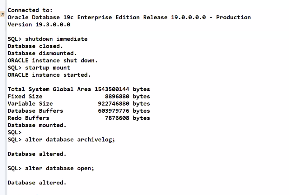 SQL> ALTER DATABASE ARCHIVELOG;