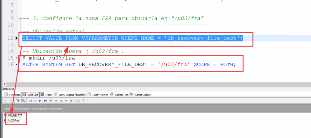 -- 3. Configure la zona FRA para ubicarla en “/u03/fra”