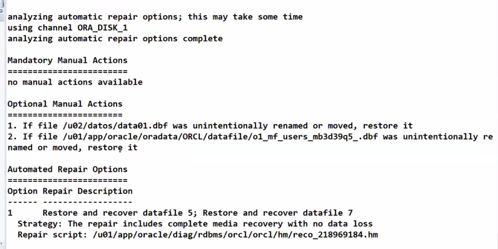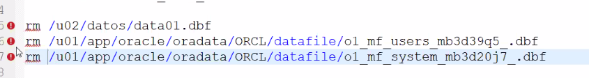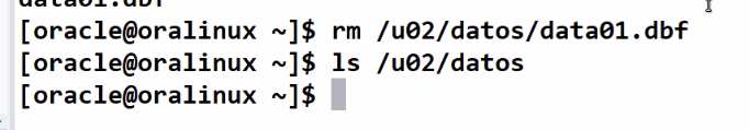 - Oracle va seguir trabajando hasta que se corra un proceso interno que se de cuenta que no hay un datafile