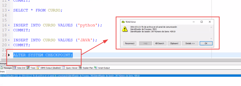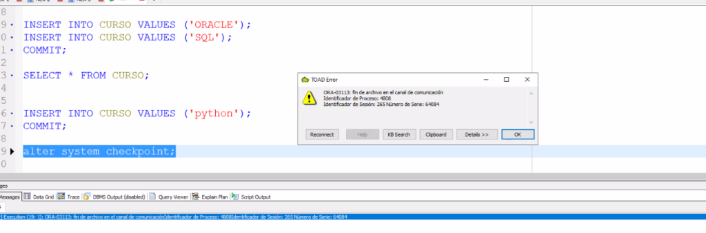 - Esto indica que el controlfile esta bien