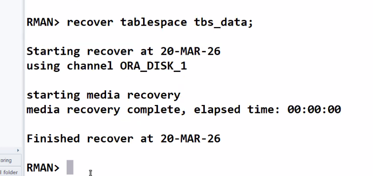 RMAN> RECOVER TABLESPACE TBS_DATA;