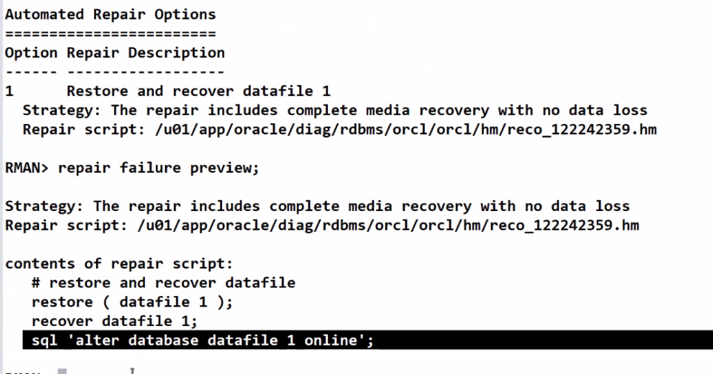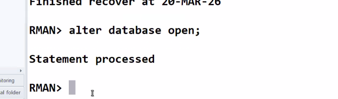 RMAN> ALTER DATABASE OPEN;