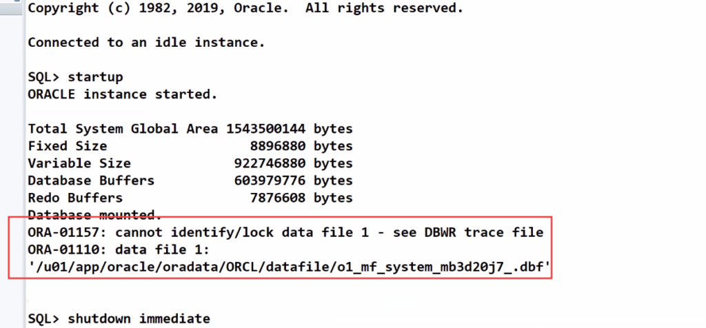 SQL> SHUTDOWN IMMEDIATE