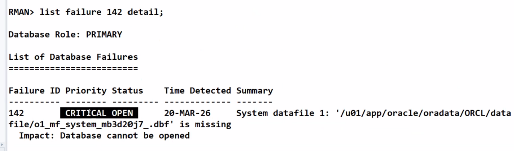 list failure 142 detail;