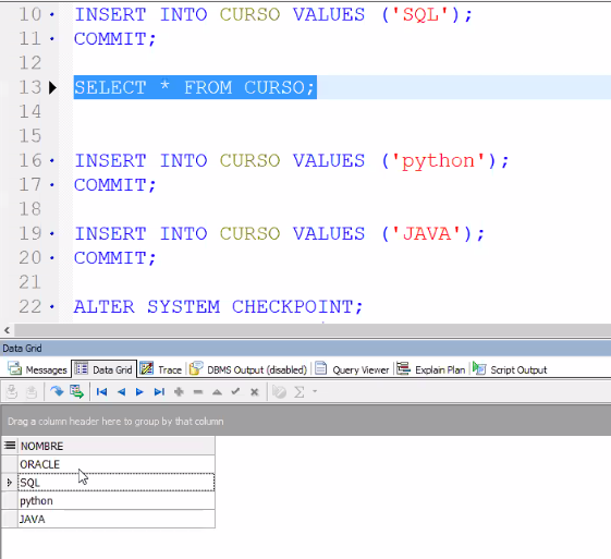 INSERT INTO CURSO VALUES ('ORACLE');