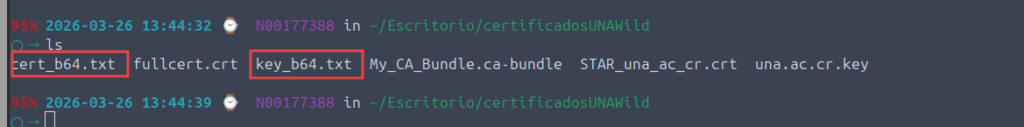 cat una.ac.cr.key | base64 -w 0 > key_b64.txt