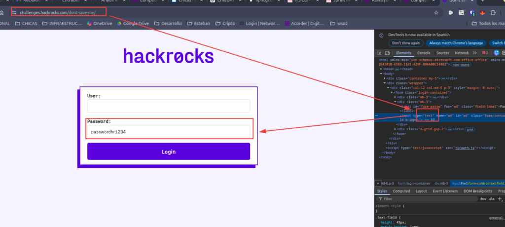 - Y para verla le damos ver código fuente -> pasar el campo de type=»password» a type=»text»