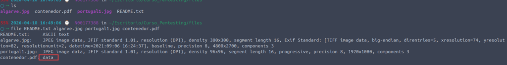 file contenedor.pdf, el sistema no mira la extensión — lee los primeros bytes y los compara contra una base de datos de firmas. Por eso devolviódataen lugar dePDF document - Verificar tamaño exacto