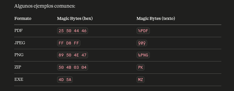 Todo archivo tiene una «firma» — los primeros bytes que identifican su formato. Es como el DNI del archivo, independientemente de su extensión.
